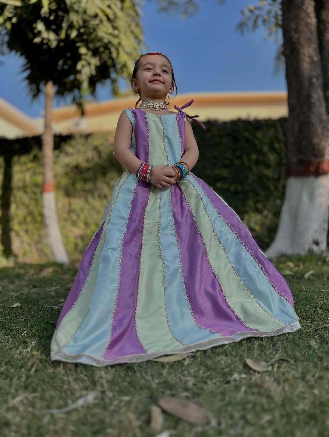 Multi color Raw silk gotta kinari work lehangaΒ